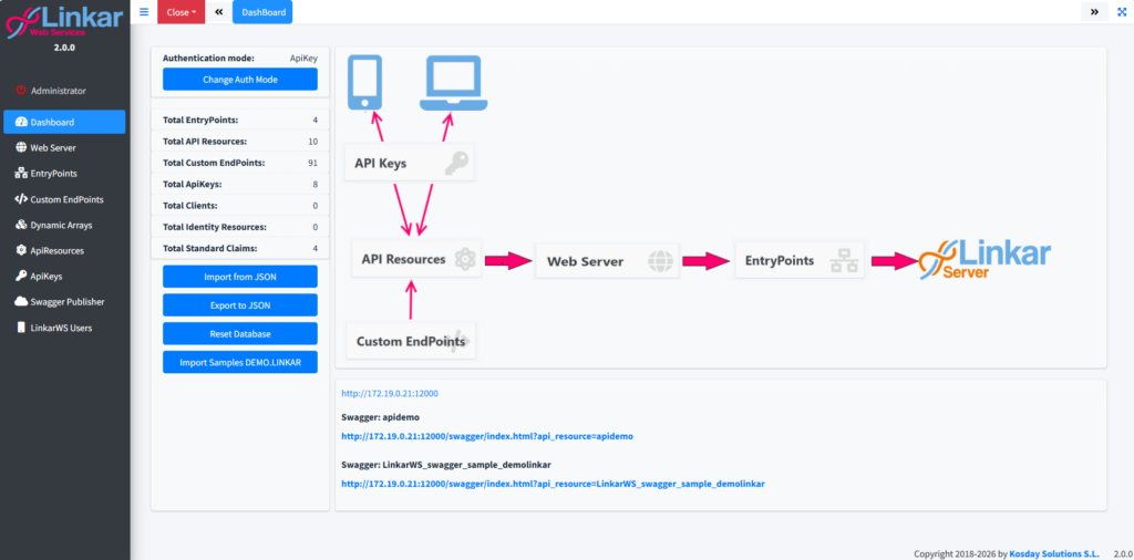 - LinkarWS Manager: Allows to configure all the functionalities and create the APIs to be exposed.