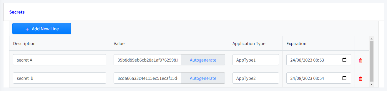 String that identifies the type of application that the secret will use (app, web, etc.).