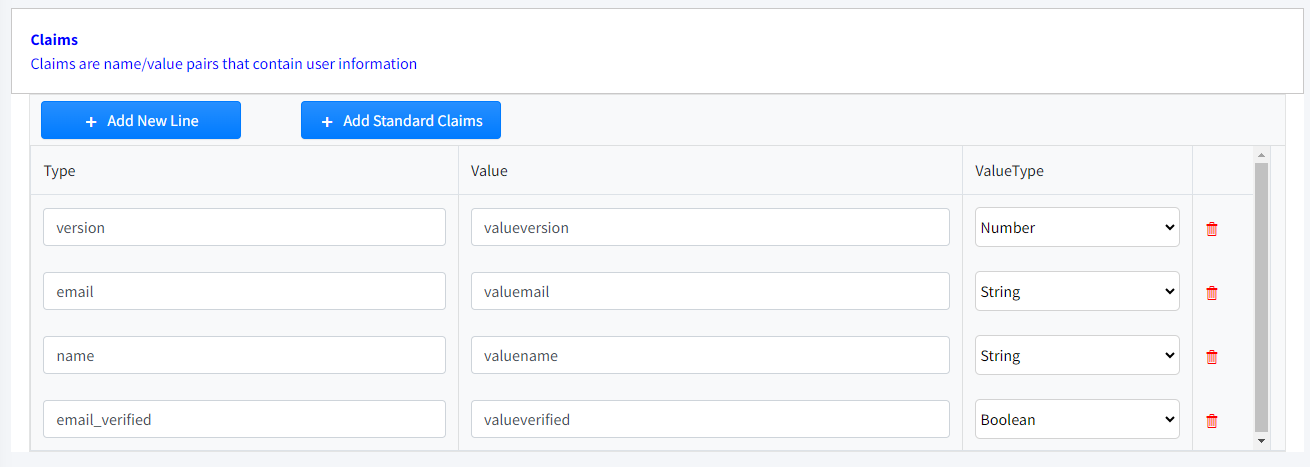 And finally we will define the Client Claims that will be passed in the token. The defined prefix will be added to the Claim name to avoid confusion with User Claims.
