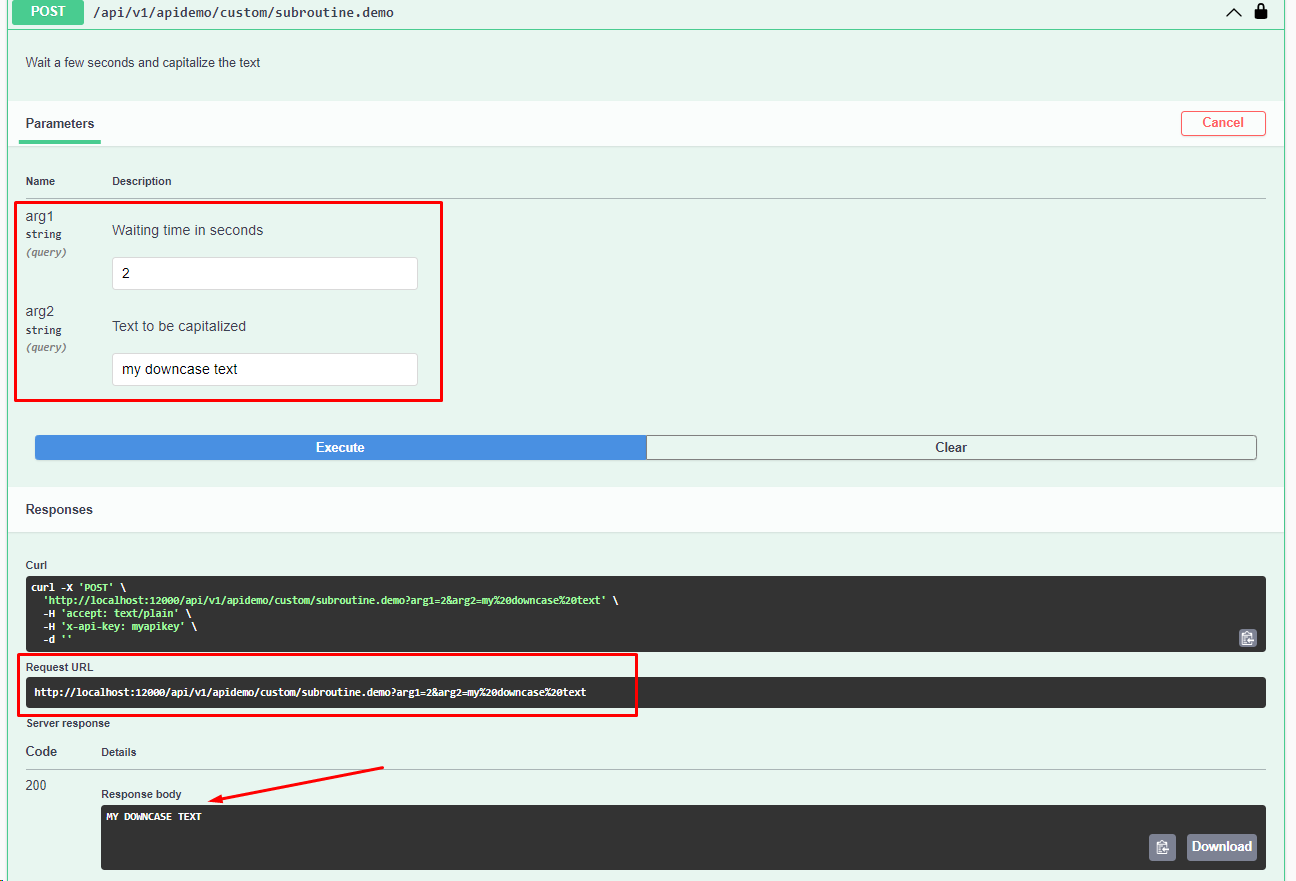 In this section we will include the necessary parameters to document the EndPoint in the Swagger and to execute the sendcommand function.