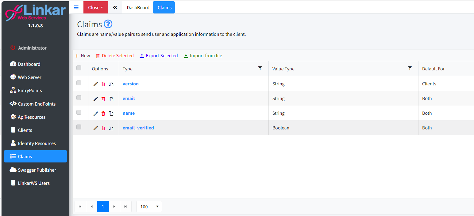 In this form we will define the Standard Claims to be used later, either at client level, user level or both. But you can always create new claims at Client or Identity Resource level.