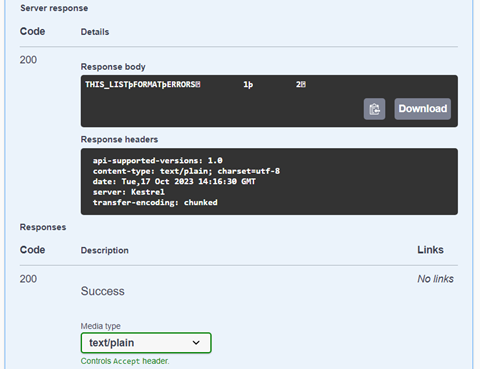 In responses of type "text/plain" (LkString MV), error codes and messages are separated by multivalue marks.