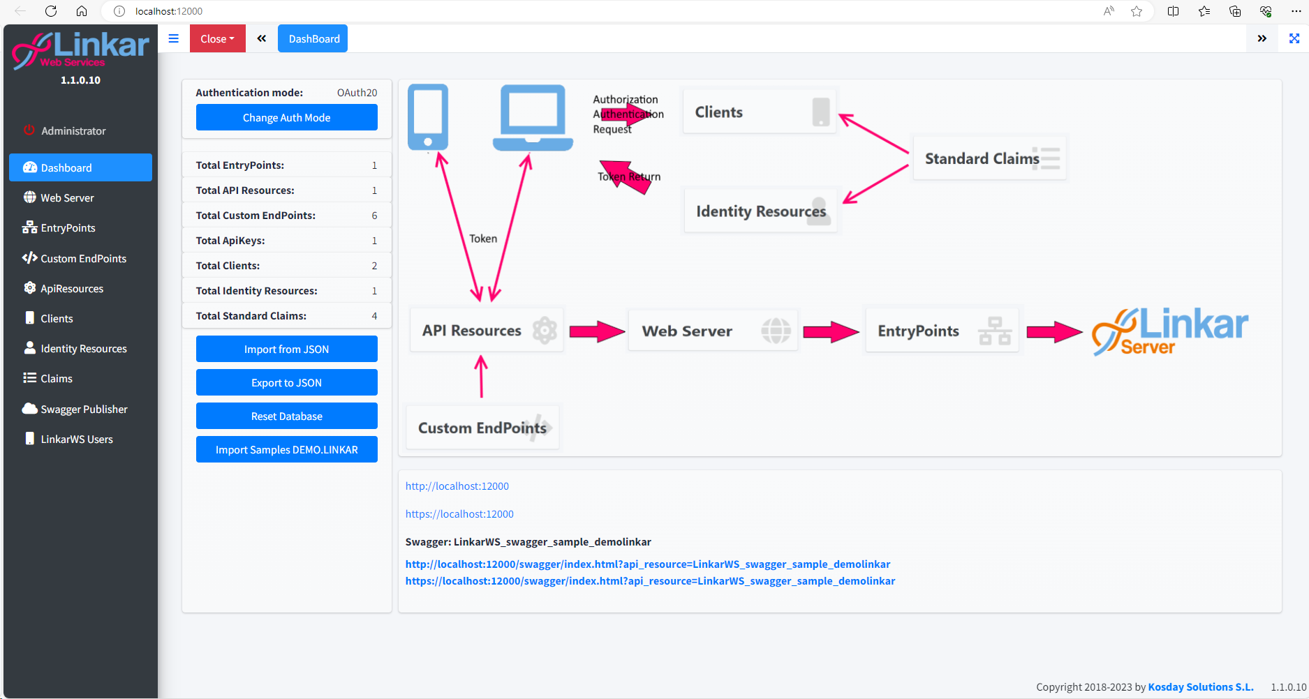 Opens the Web Server tab where the Authentication mode can be modified. |