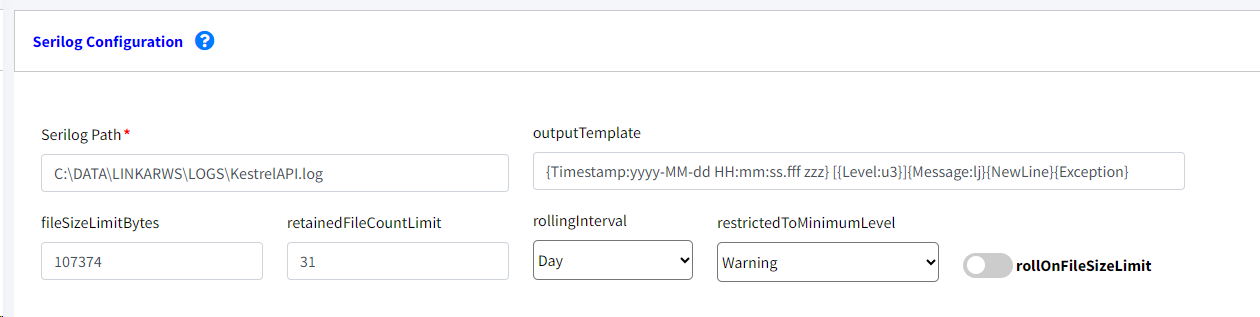 Serilog is a .NET framework for the creation of Logs generated by Kestrel. In this section the basic options are configured: